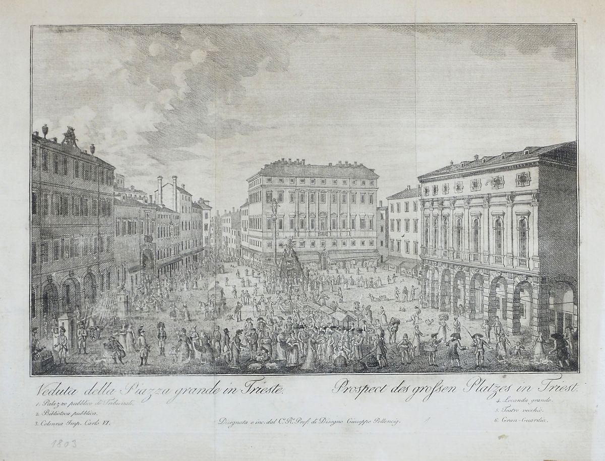 "Veduta della Piazza Grande in Trieste" cm. 27x37 - stampa