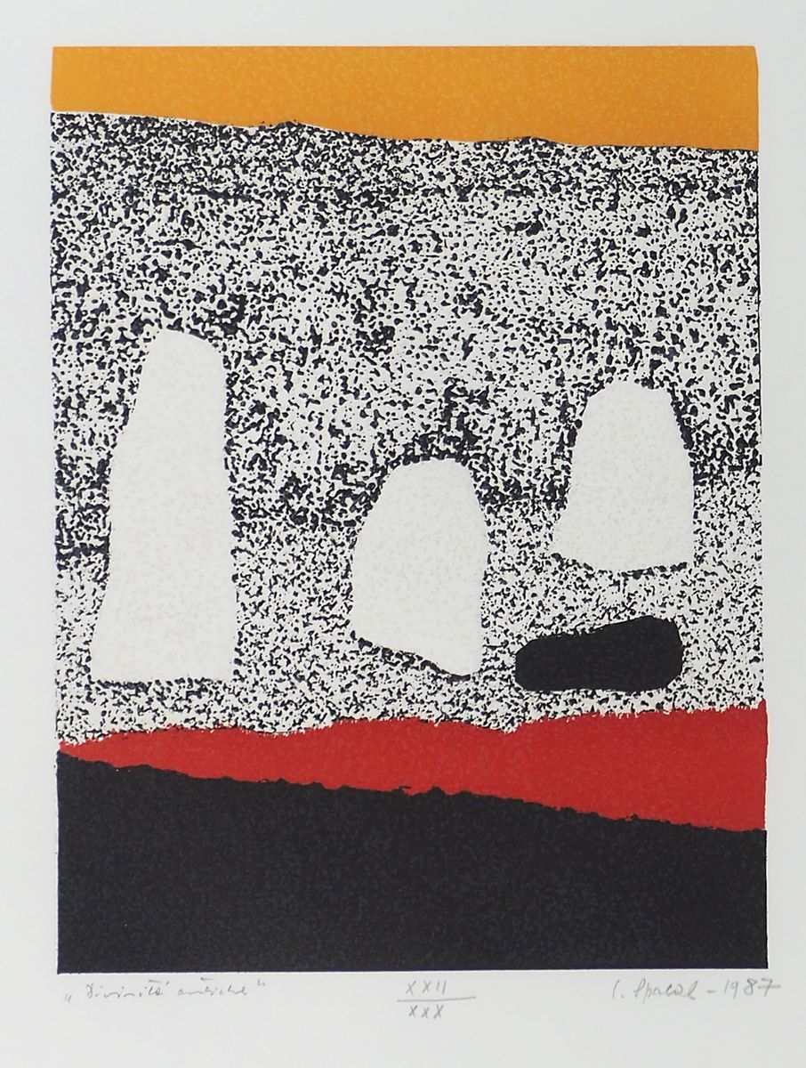 Luigi Spacal Trieste 1908-2000 "Divinità antiche" cm. 46x35 - incisione a colori Firmato b. a d. e datato '87. Esemplare XXII/XXX.