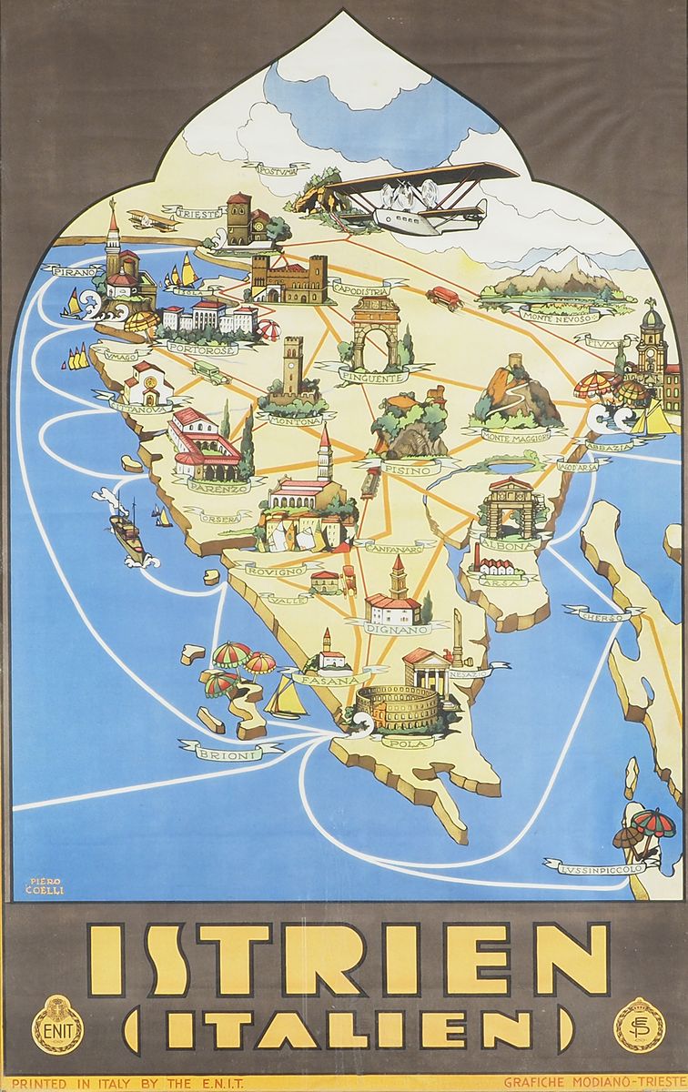 Piero Coelli 1893-1980 "Istrien-Italien" cm. 100x62 - manifesto a colori Grafiche Modiano Trieste.