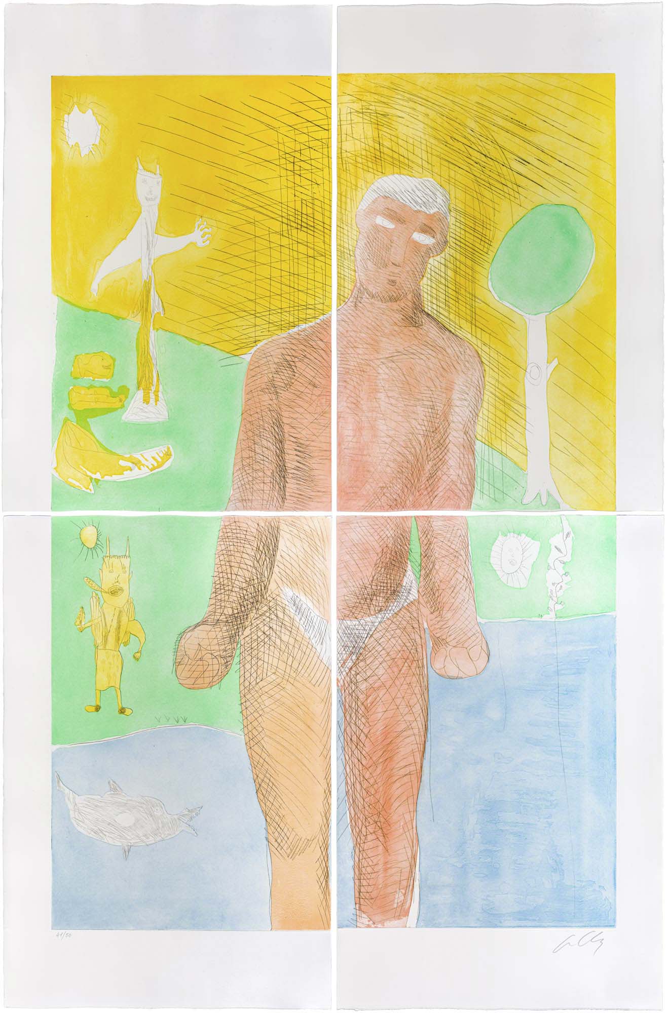 SANDRO CHIA (1946) Senza titolo Acquaforte acquerellata divisa in 4 tavole,...