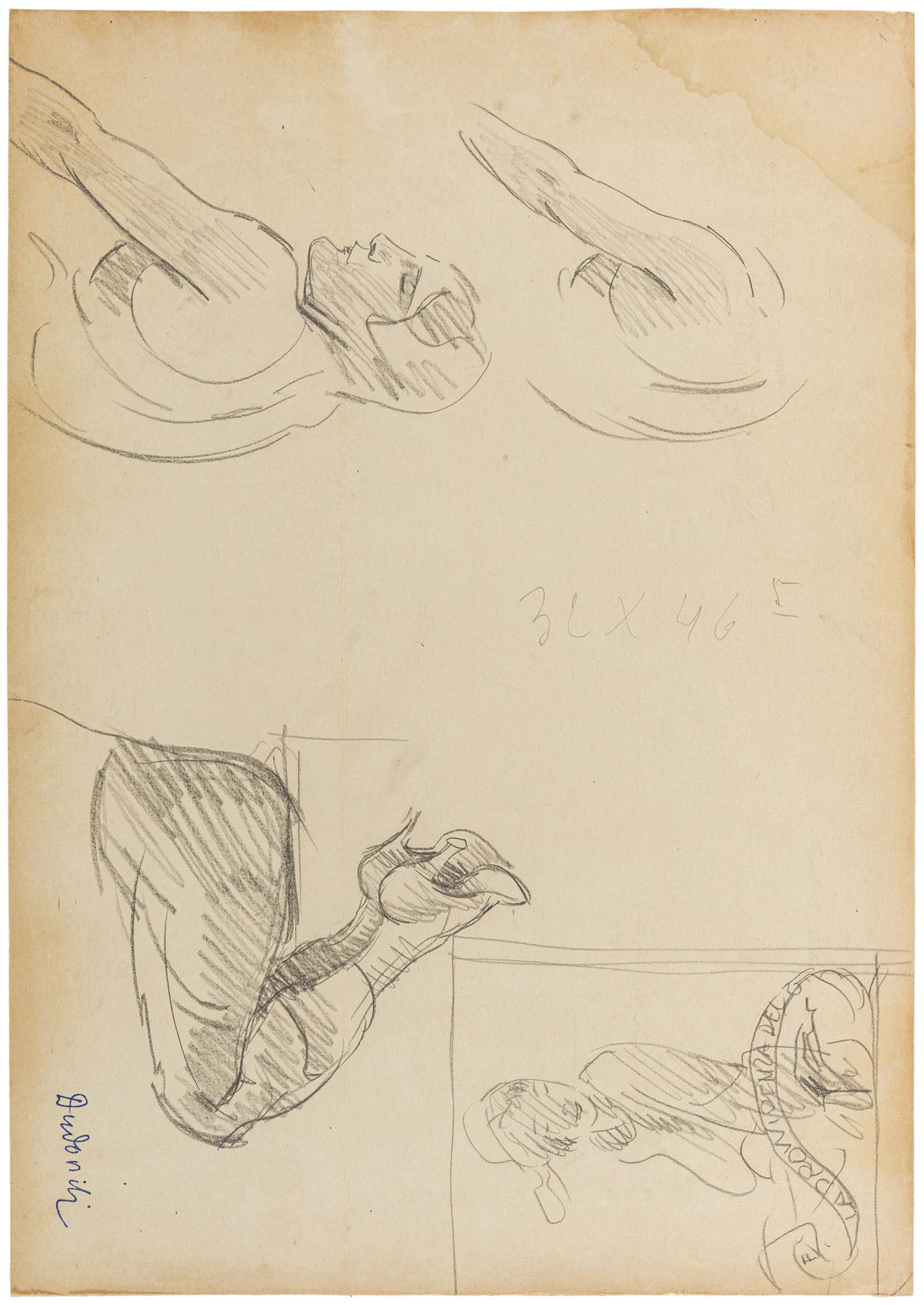 Al retro vi sono dei disegni per studi di donna per pubblicità e per 'La provvidenza'