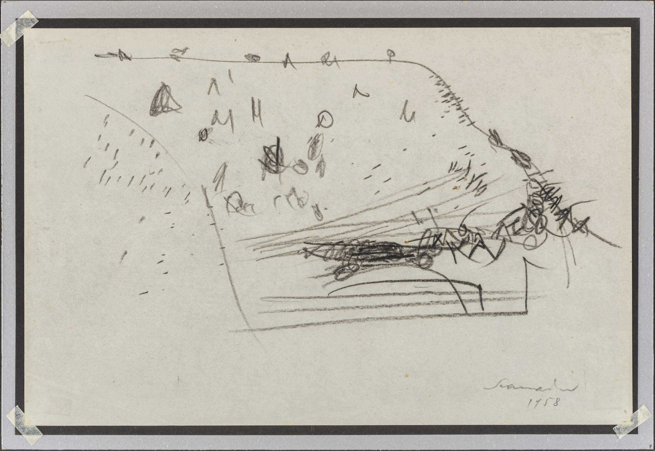 EMILIO SCANAVINO (1922 - 1986) Senza titolo 1958 Matita grassa su carta 19 x...