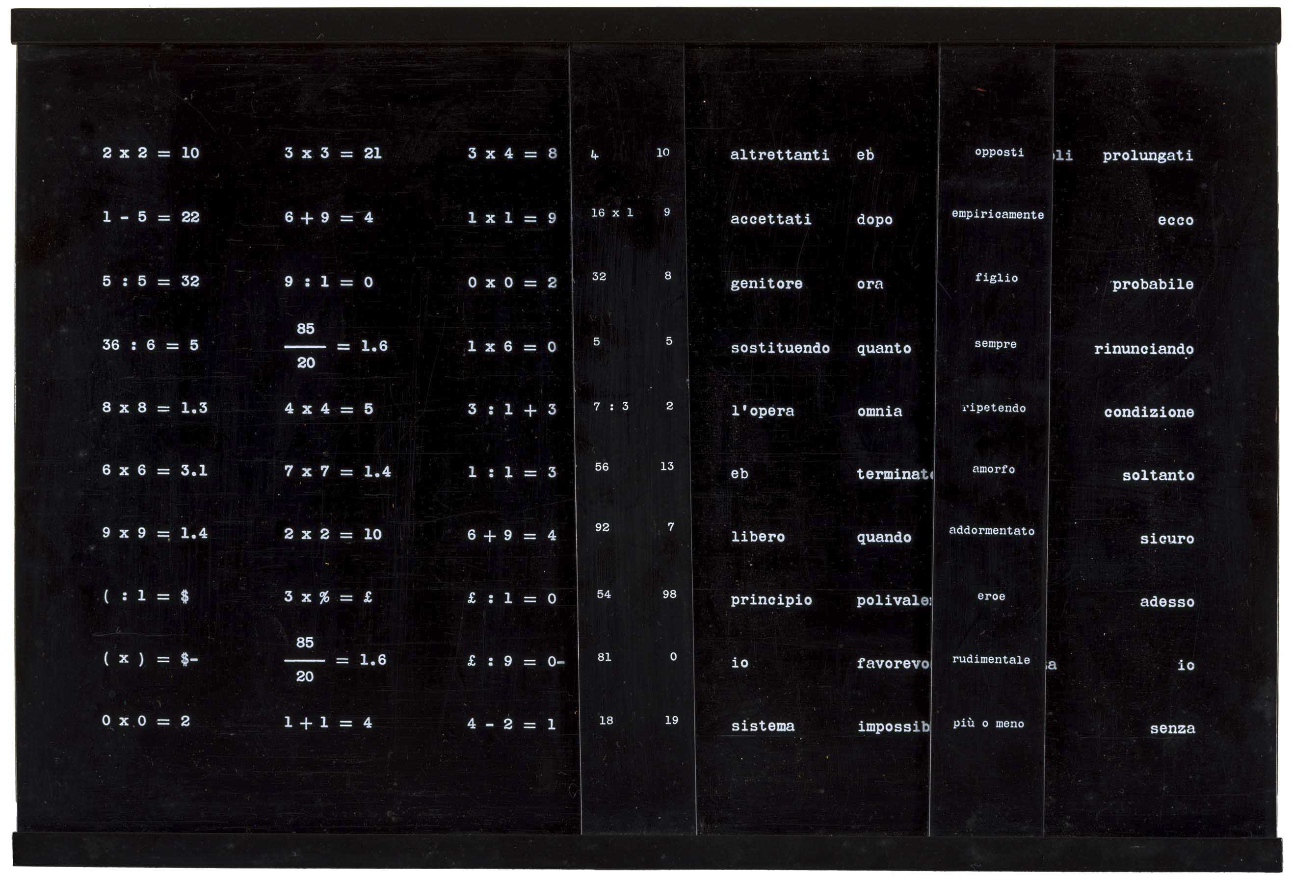 Multiplo in plexiglass, es. 117/150, Edizioni Giampaolo Prearo, Milano, accompagnato dal libro d'artista 'Tesi' (Prima edizione, tiratura in 2.000 esemplari).