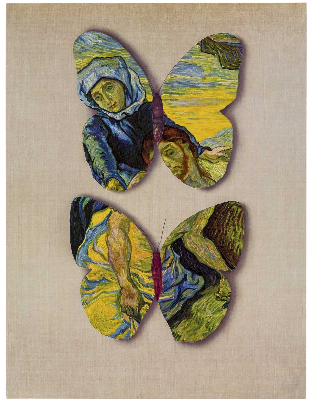 JIRI KOLAR (1914 - 2002) Due farfalle con 'Deposizione' di Van Gogh 1989...