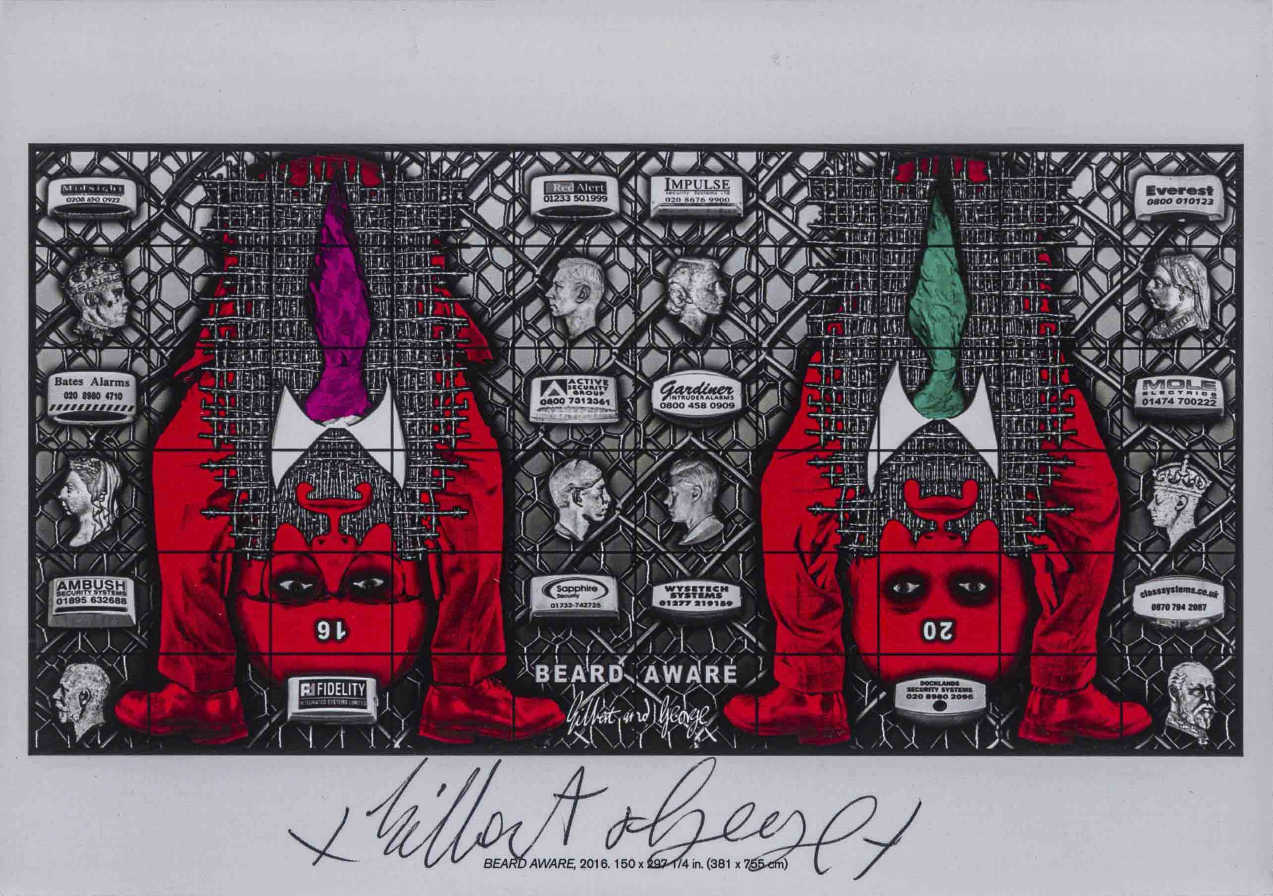 GILBERT AND GEORGE Beard Aware 2016 Stampa offset su cartolina, edizione...