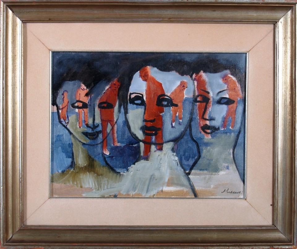 Lotto 47 | MACCARI MINO (Siena 1898 - Roma 1989) "Tre volti" 1989 Olio su carta intelata...