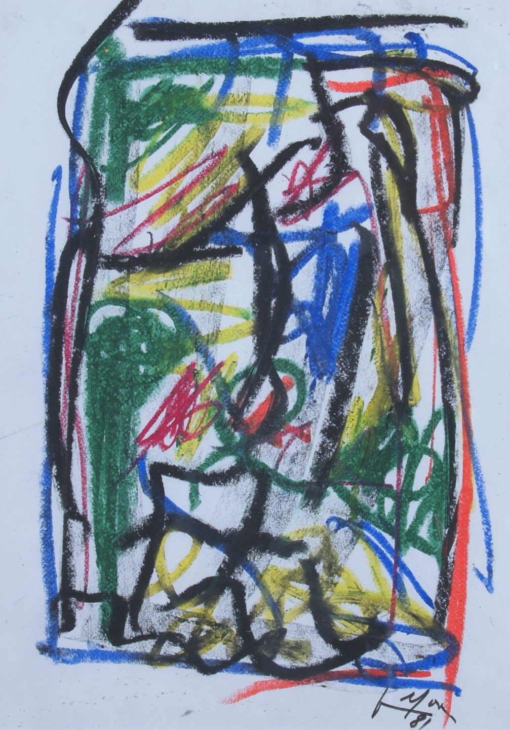 "Senza titolo" 1981 Tecnica mista su carta cm. H: 29.00 P: 21.00 Firma ed anno in basso a destra. Autentica dell'autore su foto in data 23.12.1999. Autentica Archivio Vedova Venezia n°518.