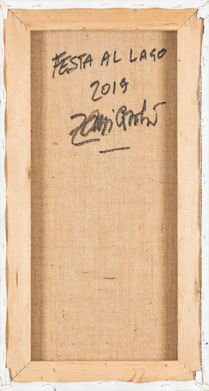 CORRADO ZANI (1952)Festa al lago, 2019Olio su telacm 60x32Firma al...
