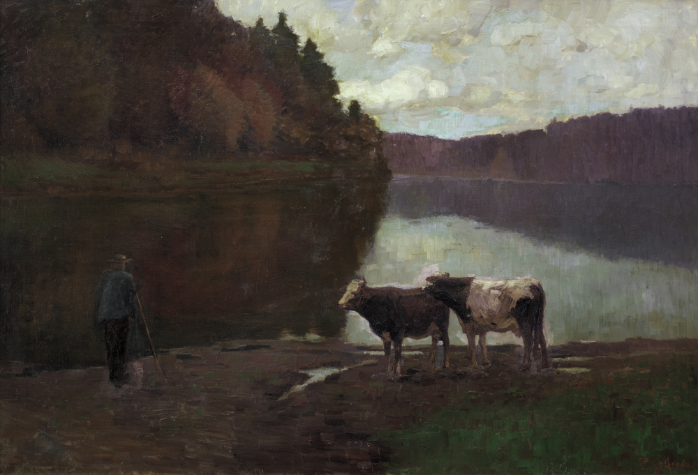 RAFFAELE DE GRADA Milano 02/03/1885 - Milano 10/04/1957 Paesaggio montano, Il lago di Oberblegsee, 1912 olio su tela cm. 75x110, firma in basso a destra, dichiarazione d'autenticità a cura del figlio Raffaele De Grada Jr. su foto, opera registrata presso l'Archivio Raffaele De Grada al numero 3/2007 D-GR come da dichiarazione della Dott. Nicoletta Colombo su stampa fotografica.