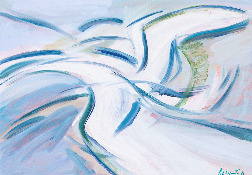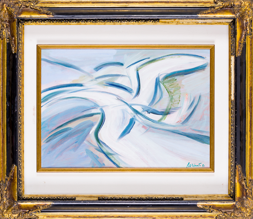 ARMANDO PIZZINATO (1910-2004)Gabbiani, 1971Olio su tavolacm 35x45Firma e...