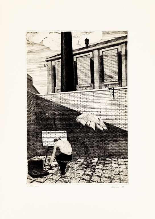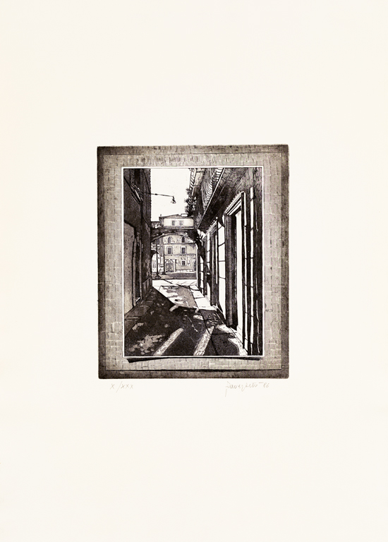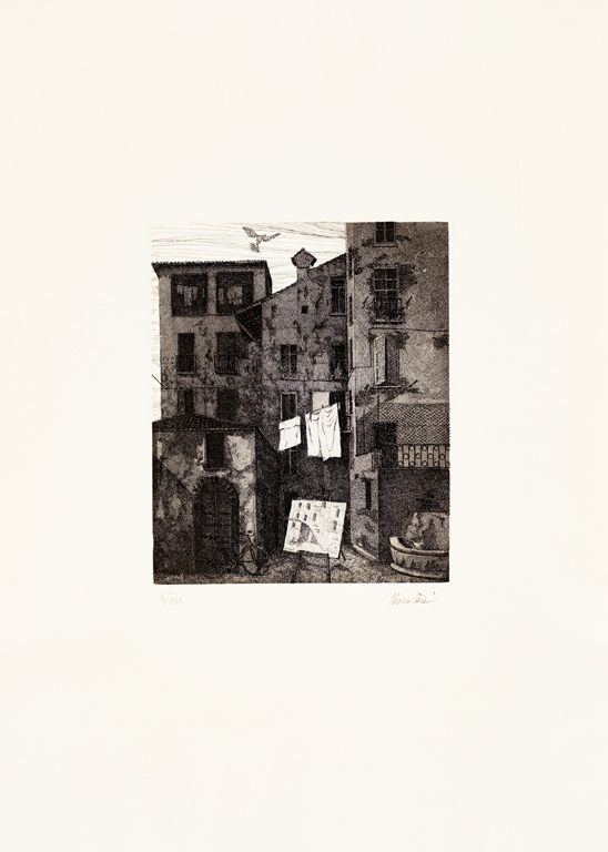 Cartella contenente un racconto di Renzo Bresciani e 5 incisioni di Giuseppe Gallizioli, Carlo Pescatori, Paolo Petrò, Enrico Schinetti e Primo Tinelli, ciascuna recante firma, datazione e numerazione (Esemplare X/XXX) a matita al fronte