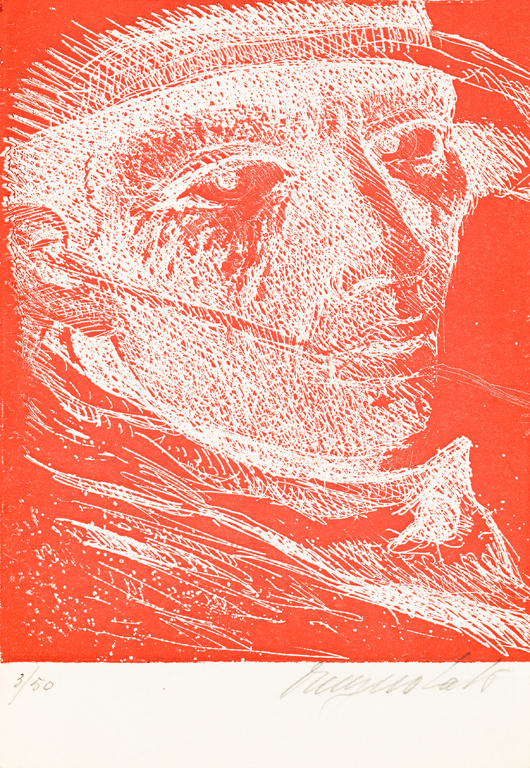 Firma indecifrata e numerazione (Esemplare 3/50) a matita al fronte