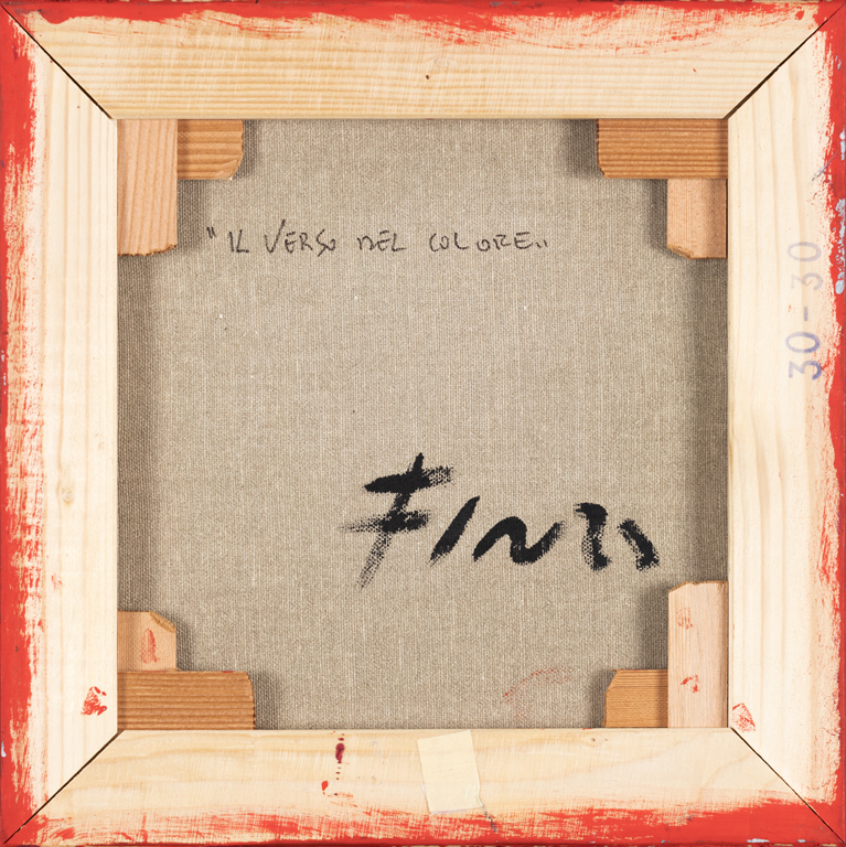ENNIO FINZI (1931)Verso del coloreAcrilici su telacm 30x30x2Firma e titolo al...