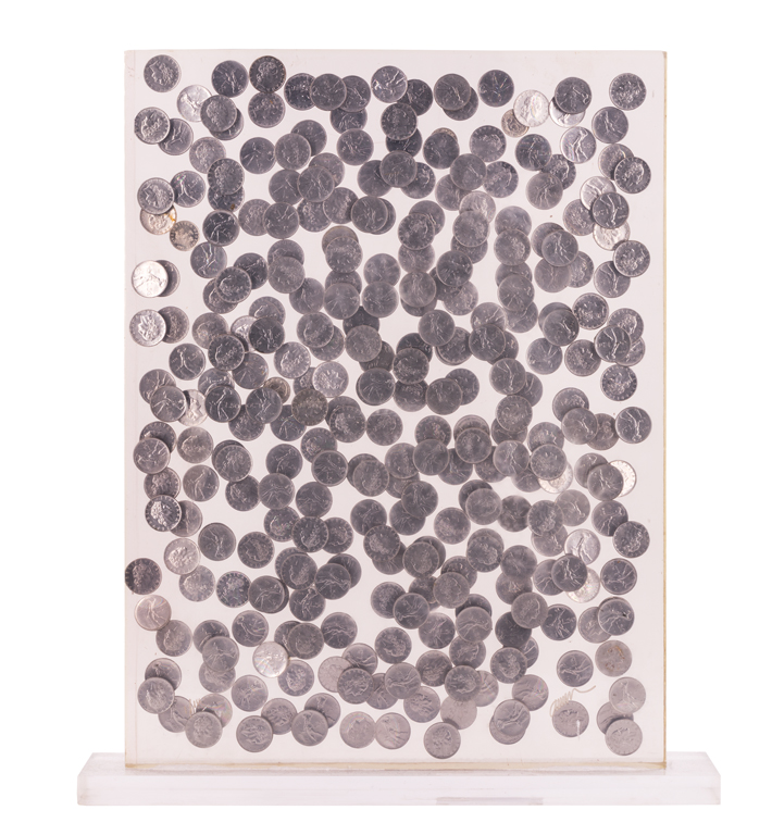 FERNANDEZ ARMAN (1928-2005)Senza Titolo, 2001Monete da 50 lire entro resinacm...