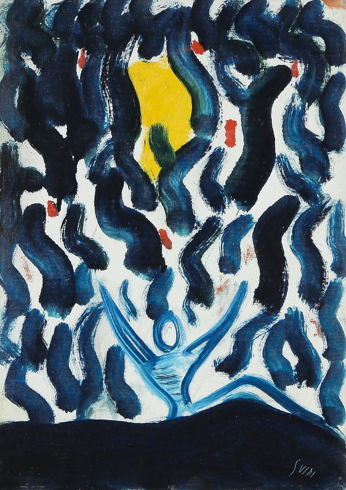 VIRGILIO GUIDI Roma 04/04/1891 - Venezia 07/01/1984 Figura, 1964/65 olio su tela applicata su cartone cm. 40x30, firma in basso a destra, firma, anno 1965 e dedica al retro, dichiarazione d'autenticità del Dott. Giovanni Granzotto su foto.