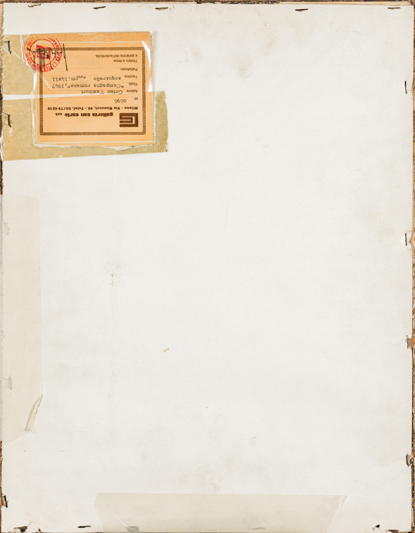 Etichetta della Galleria San Carlo (MI) al retro del cartone protettivo