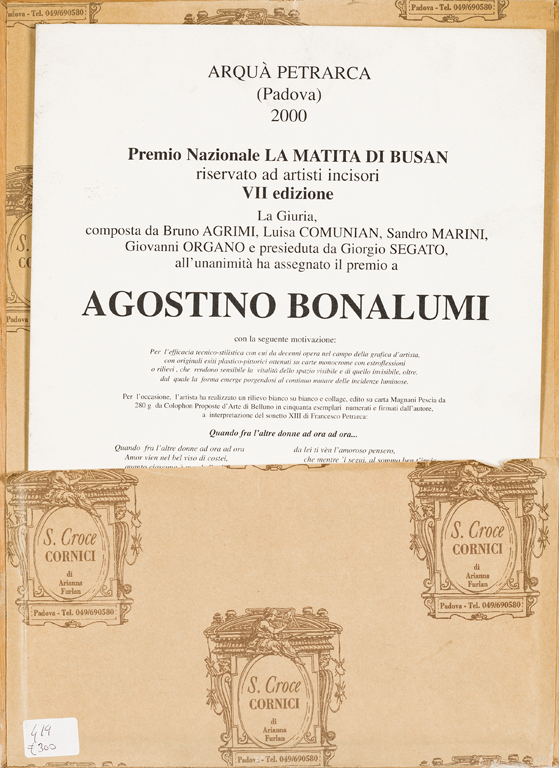 Firma e numerazione (Esemplare 15/35) a matita al fronte