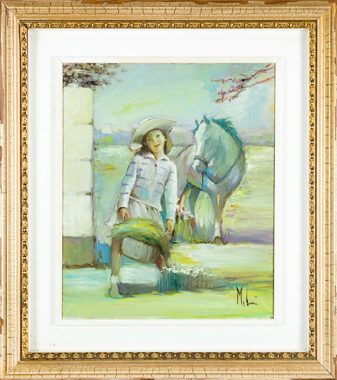 INNOCENZO MELANI (1933)Bambina con cavalloOlio su telacm 60x50Firma al...