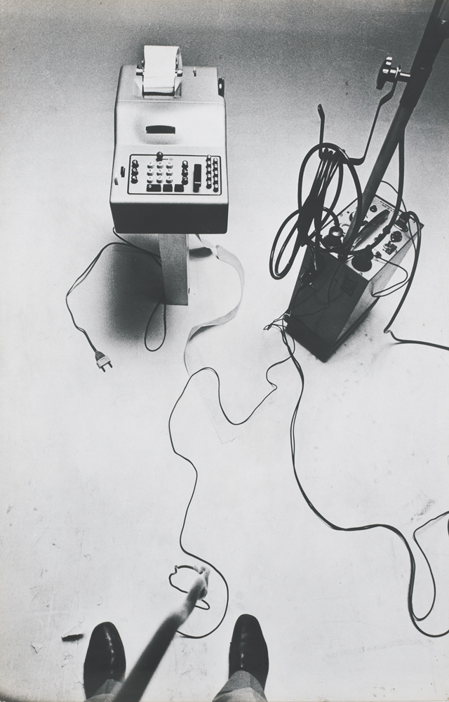 UGO MULAS Pozzolengo (Bs) 22/08/1928 - Milano 02/03/1973 La Macchina Drogata Vincenzo Agnetti, 1969 stampa ai sali d'argento su carta baritata cm. 120x80, opera non firmata, registrata presso l'Archivio Ugo Mulas (MI) come da dichiarazione di Melina Mulas su certificato allegato.