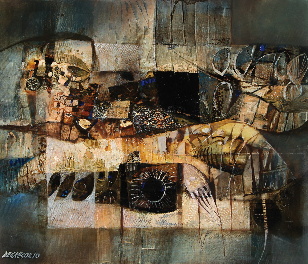 GIUSEPPE DE GREGORIO Spoleto (Pg) 11/10/1920 - 2007 Natura morta con conchiglie, 1980 olio su tela cm. 60x70, firma in basso a sinistra, firma e titolo al retro, opera registrata presso l'Archivio Generale Giuseppe De Gregorio come da certificato allegato.