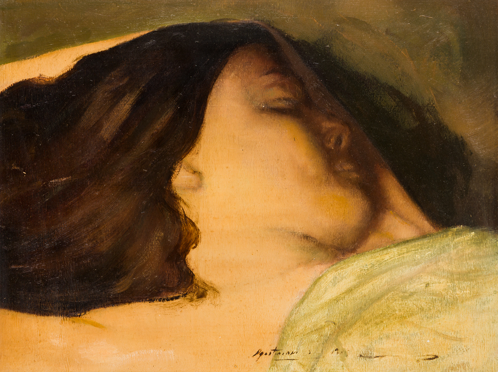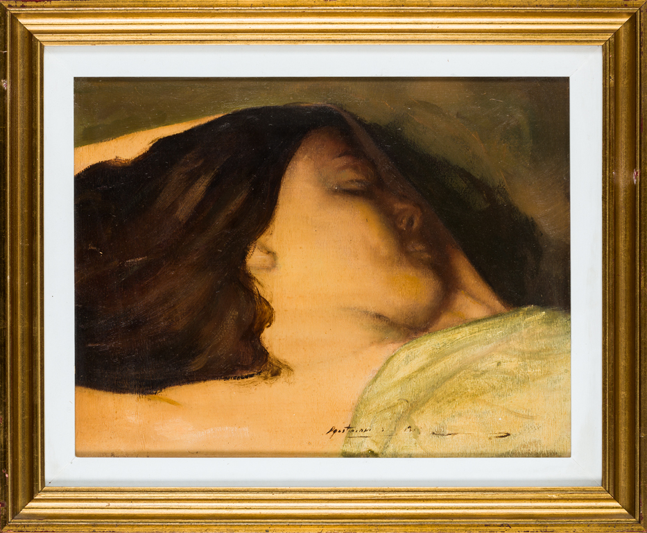 Lotto 581 | AGOSTINIProfilo, 1978Olio su compensatocm 29,5x38,5Firma e datazione al...