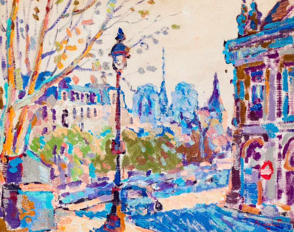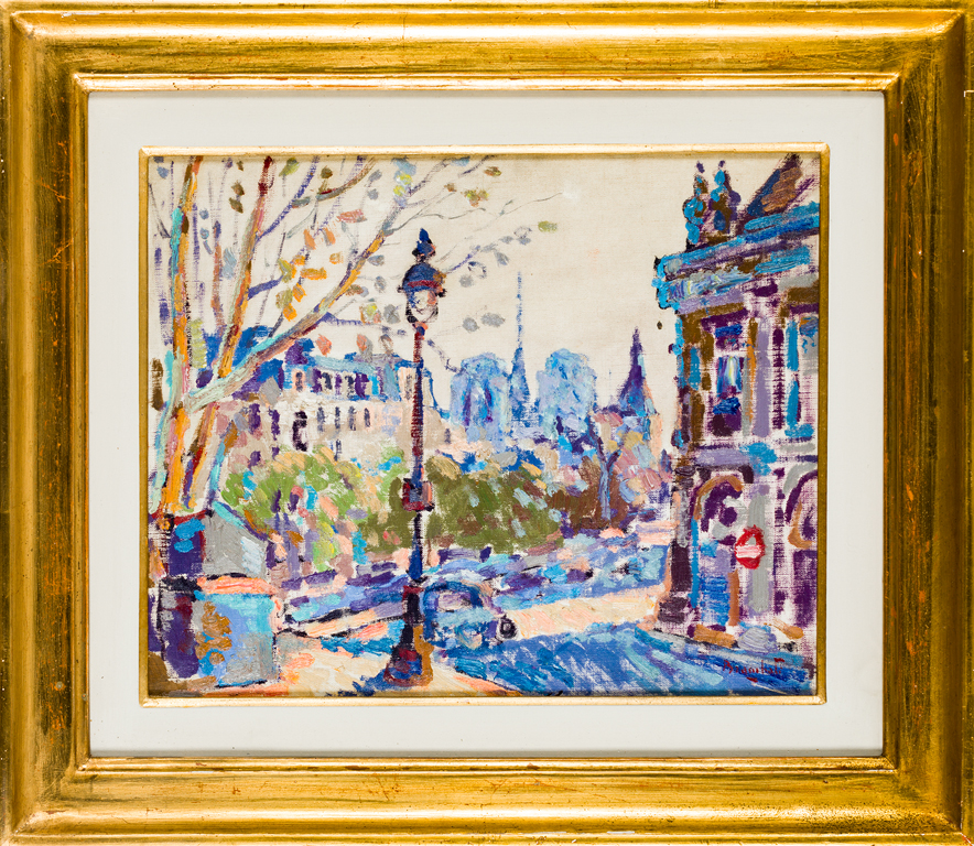 LUIGI BRAMBATI (1925-1983)Parigi. Quartiere latino, 1982Olio su tavolacm...