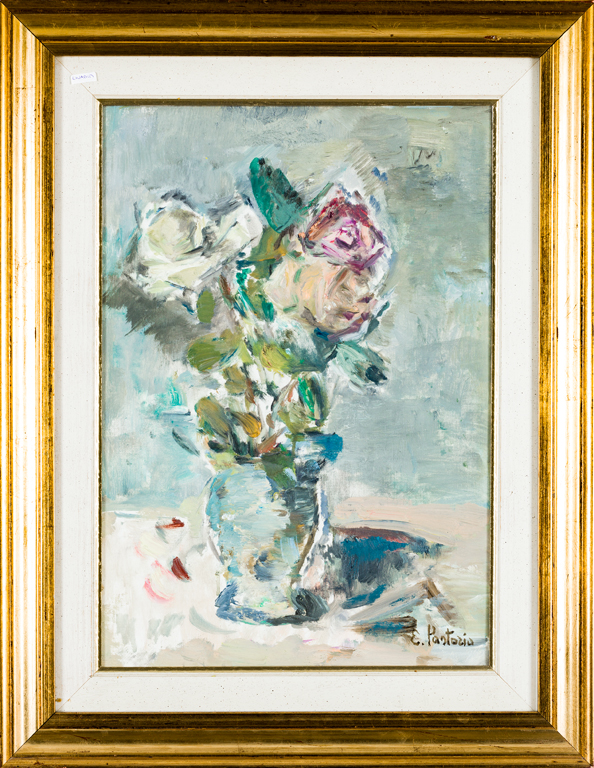 EZIO PASTORIO (1911-2006)Due rose, 1979Olio su cartone telatocm 35x50Firma al...