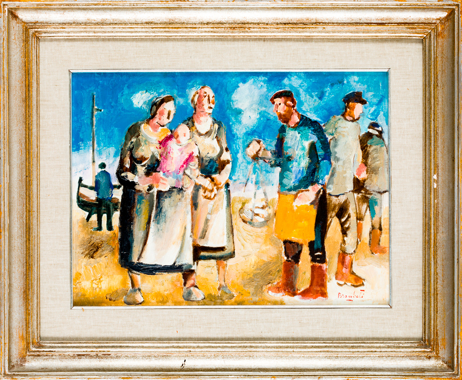 LUIGI BRAMBATI (1925-1983)Venditore di pesce, 1980Olio su tela applicata su...