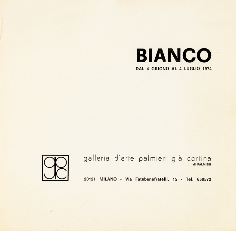 Catalogo d'arte edito in occasione della personale dell'Artista tenutasi presso la Galleria d'Arte Palmieri già Cortina di Milano nel 1974