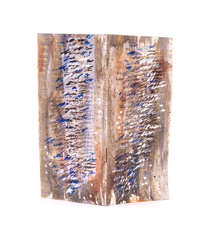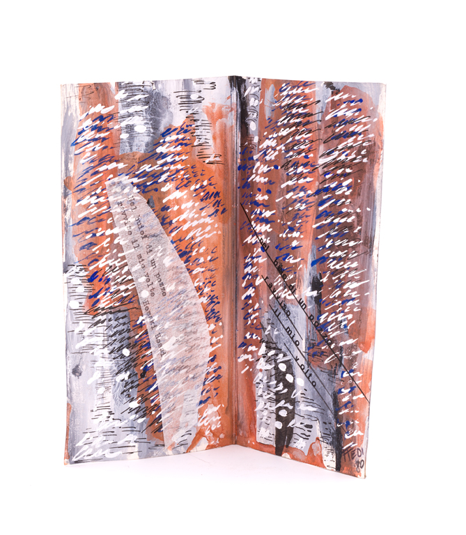 Acrilico, tempera e scritture su cartoncino - Libro aperto in contenitore di plexiglass