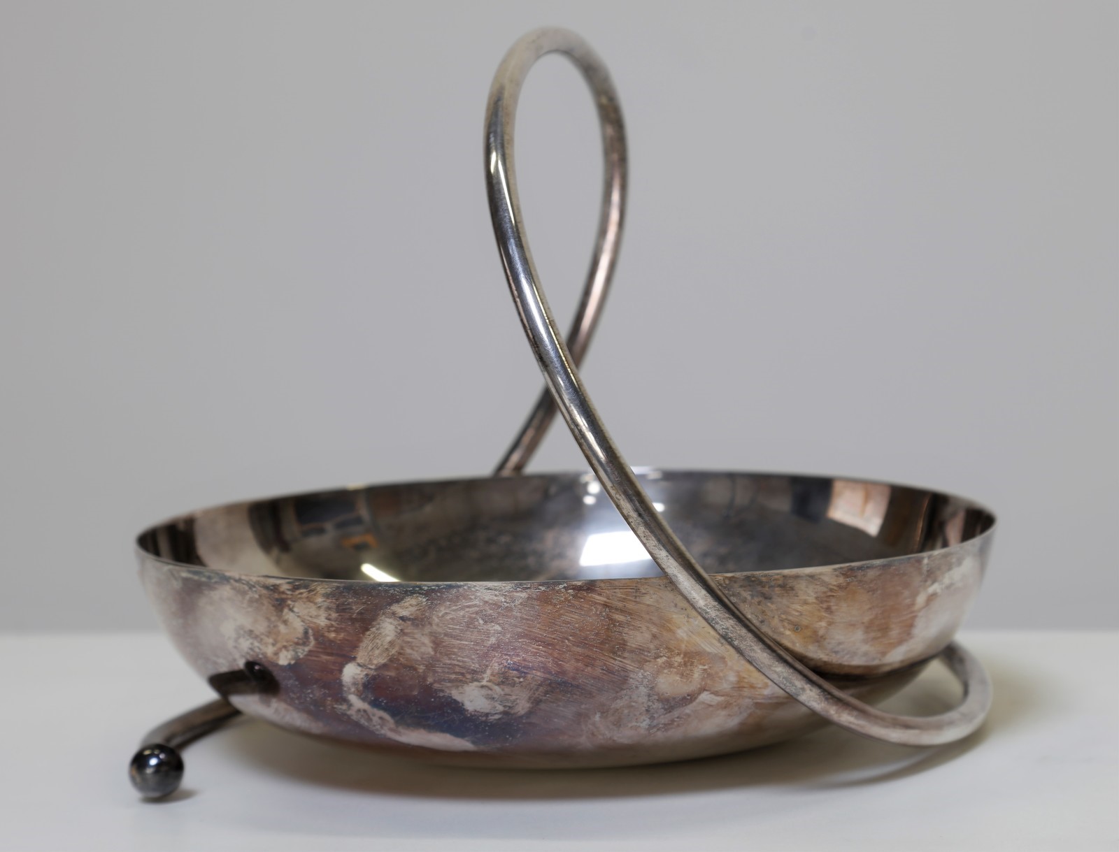 GUIDO NIEST Centrotavola . Metallo argentato. Cm 31,00 x 23,00 x 31,00. Firma...