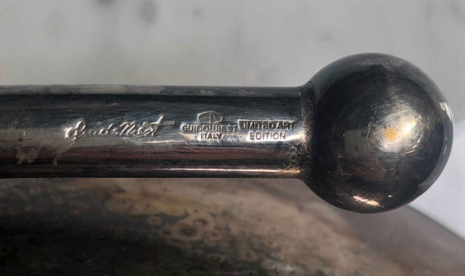 GUIDO NIEST Centrotavola . Metallo argentato. Cm 31,00 x 23,00 x 31,00. Firma presente "Guido Niest, GUIDO NIEST ITALY, LIMITED ART EDITION" , anni 80.