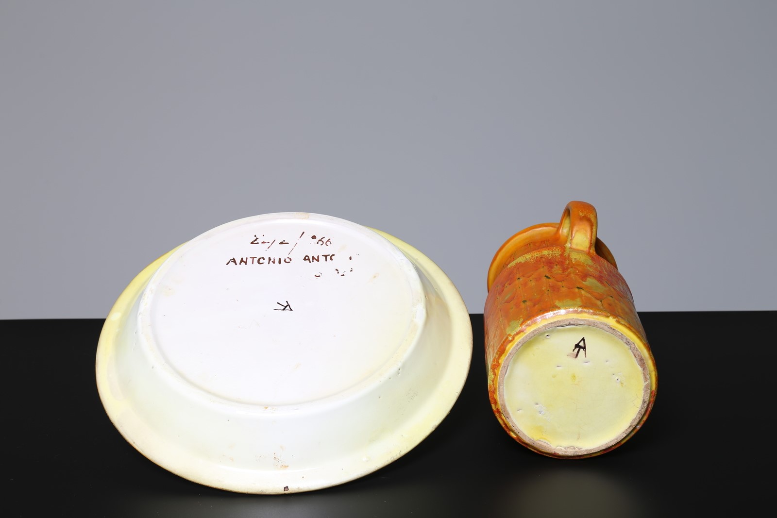 TASCA ALESSIO (n. 1929) Plate and jug. Stoneware ceramic. Cm 17,50 x 25,00 x 13,50. Signature and date on the back, 1966.