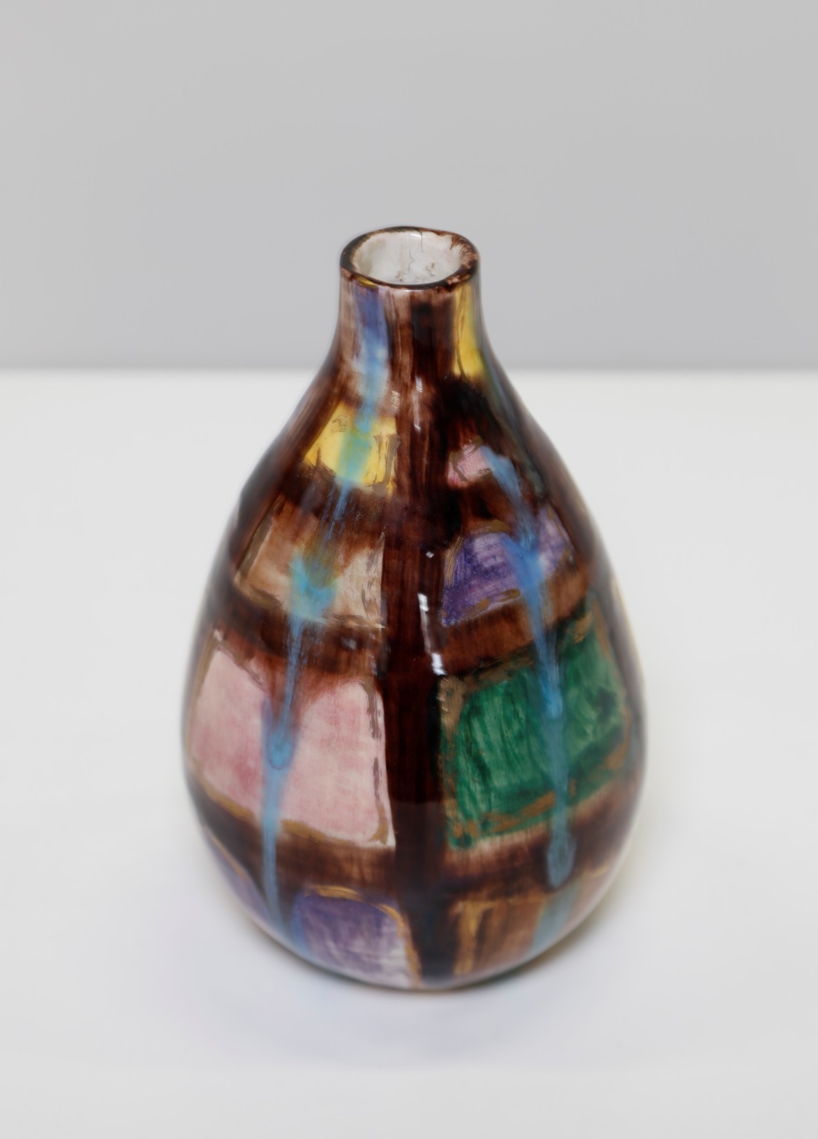 NEERA GATTI (1906 - 1973) Polychrome vase. Ceramic. Cm 11,00 x 18,50 x 11,00. 50s, signature "Venice" lower.