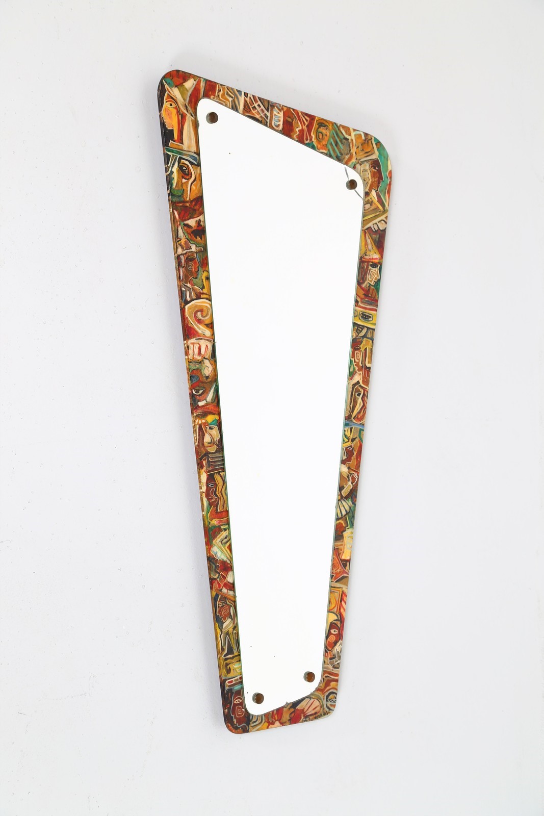GRUPPO DECALAGE Wall mirror. Wood and glass. Cm 43,00 x 99,00 x 3,50. Frame in painted wood and glass, 50s.