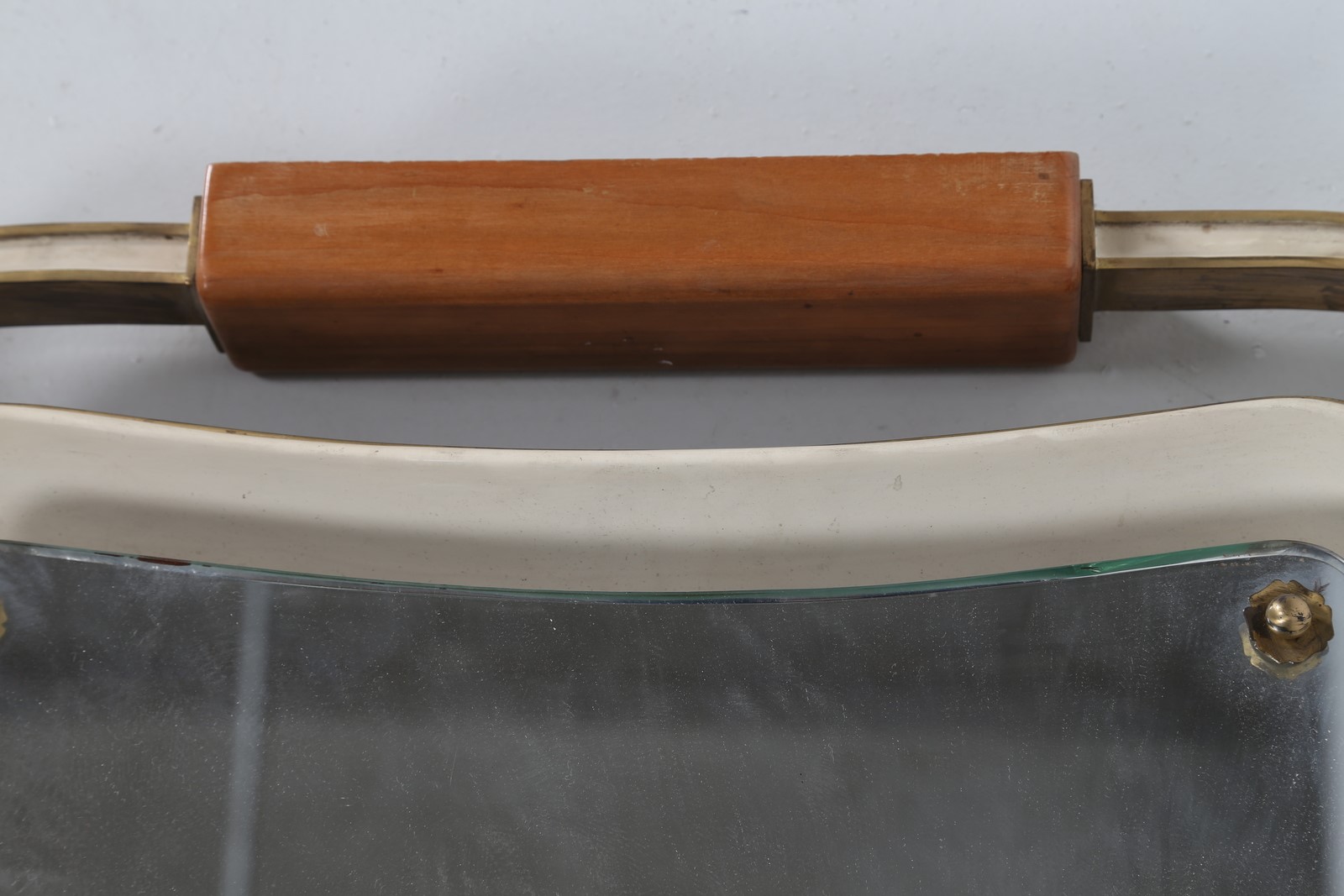 MANIFATTURA ITALIANA Specchio da tavolo. Ottone, metallo laccato e vetro. Cm...