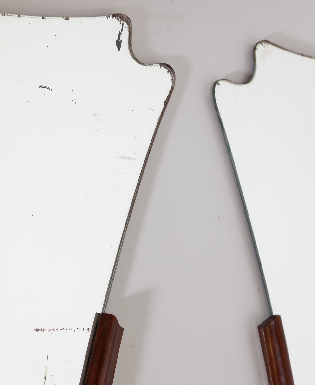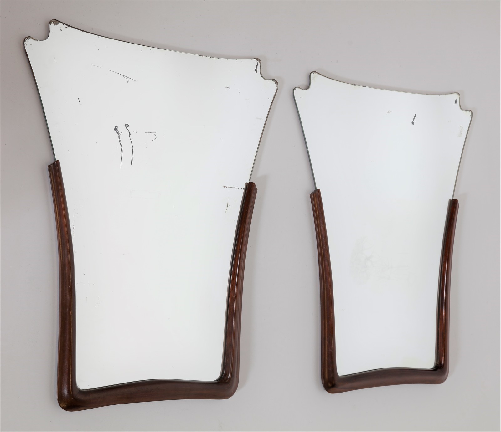 TEMPESTINI MAURIZIO (1908 - 1960) Pair of wall mirror. Walnut and glass. Cm 65,00 x 82,00 x 4,00. Florence, 40s. On the back: Alari Gen, 1951.