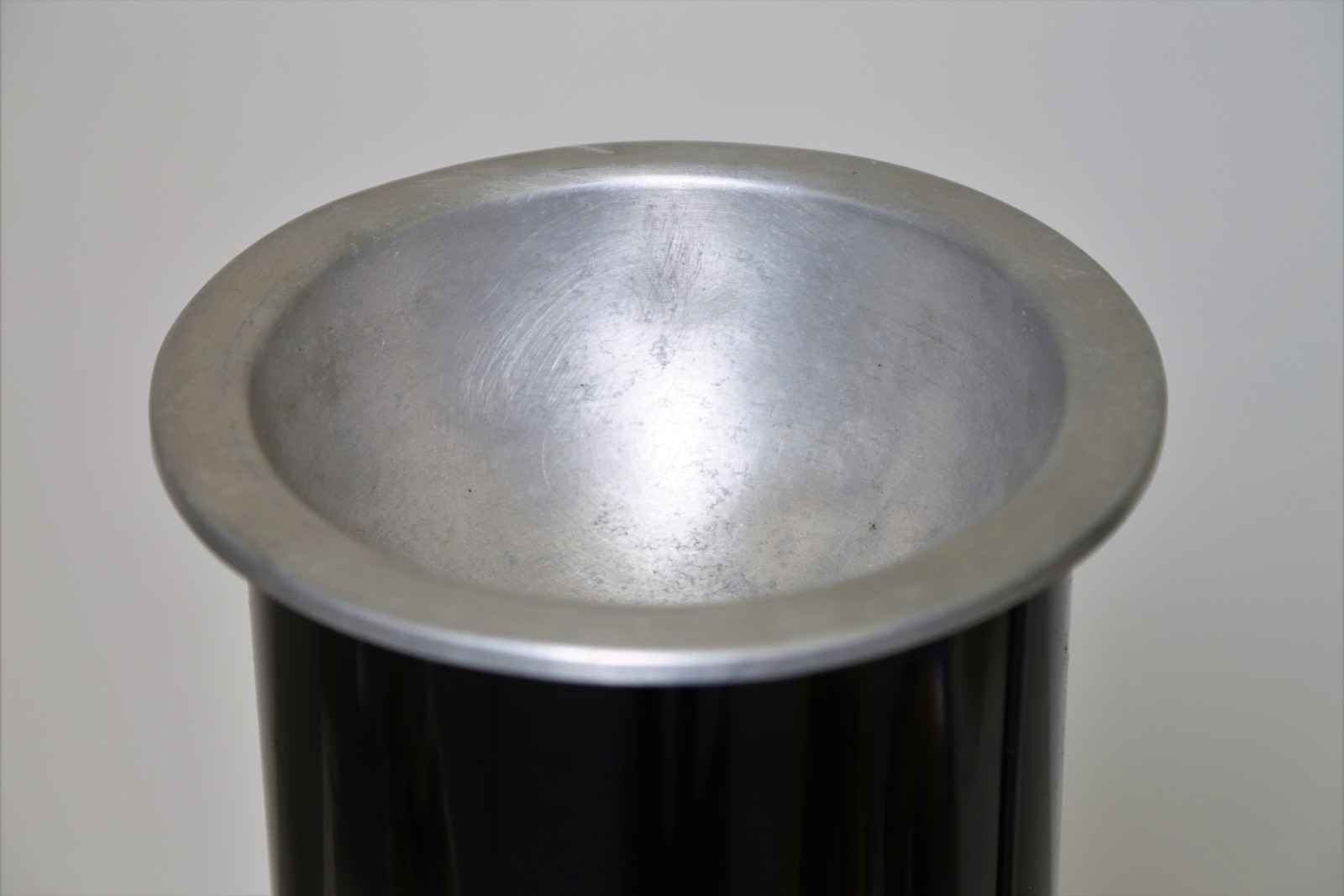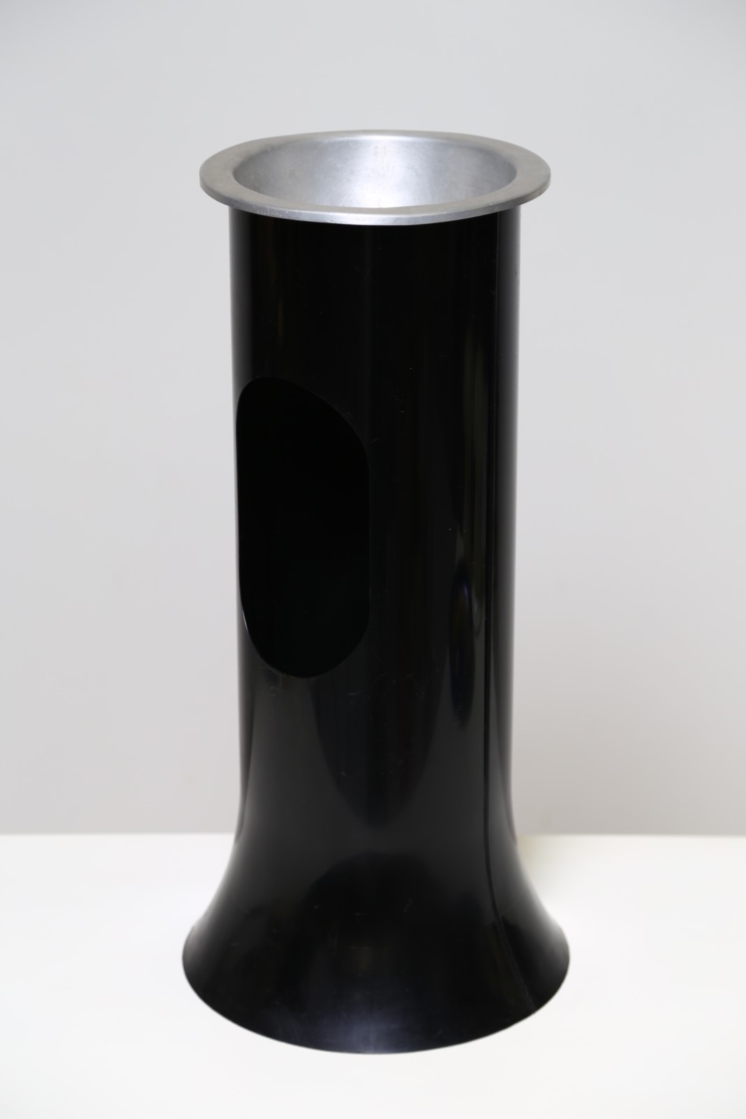 ASTI SERGIO (n. 1926) Cestino con posacenere. Alluminio e plastica. Cm 29,00 x 60,00 x 29,00. Prodotto da Bilumen, marchio dell'azienda produttrice alla base " BILUMEN, Art. 12, design Sergio Asti, made in Italy", anni 70.