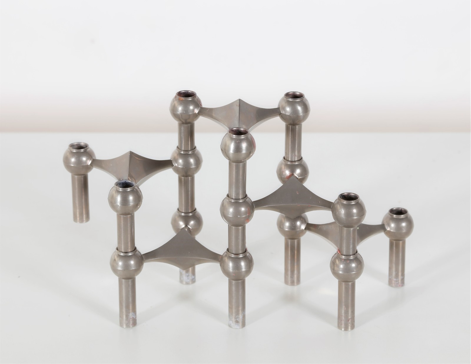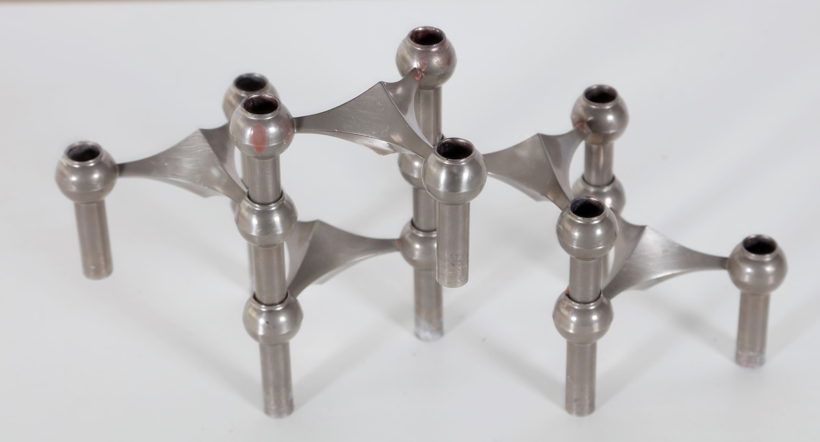 CAESAR STOFFI & FRITZ NAGEL Modular candle holder. . Cm 30,00 x 15,00 x 14,00. Five pieces, for BMF (Germany), 1962.