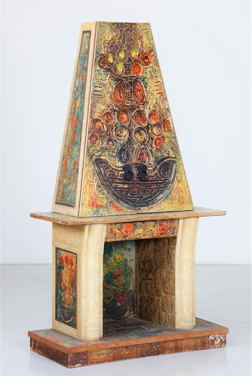 MANIFATTURA ITALIANA Finto camino mobile bar. Legno verniciato e laccato. ....