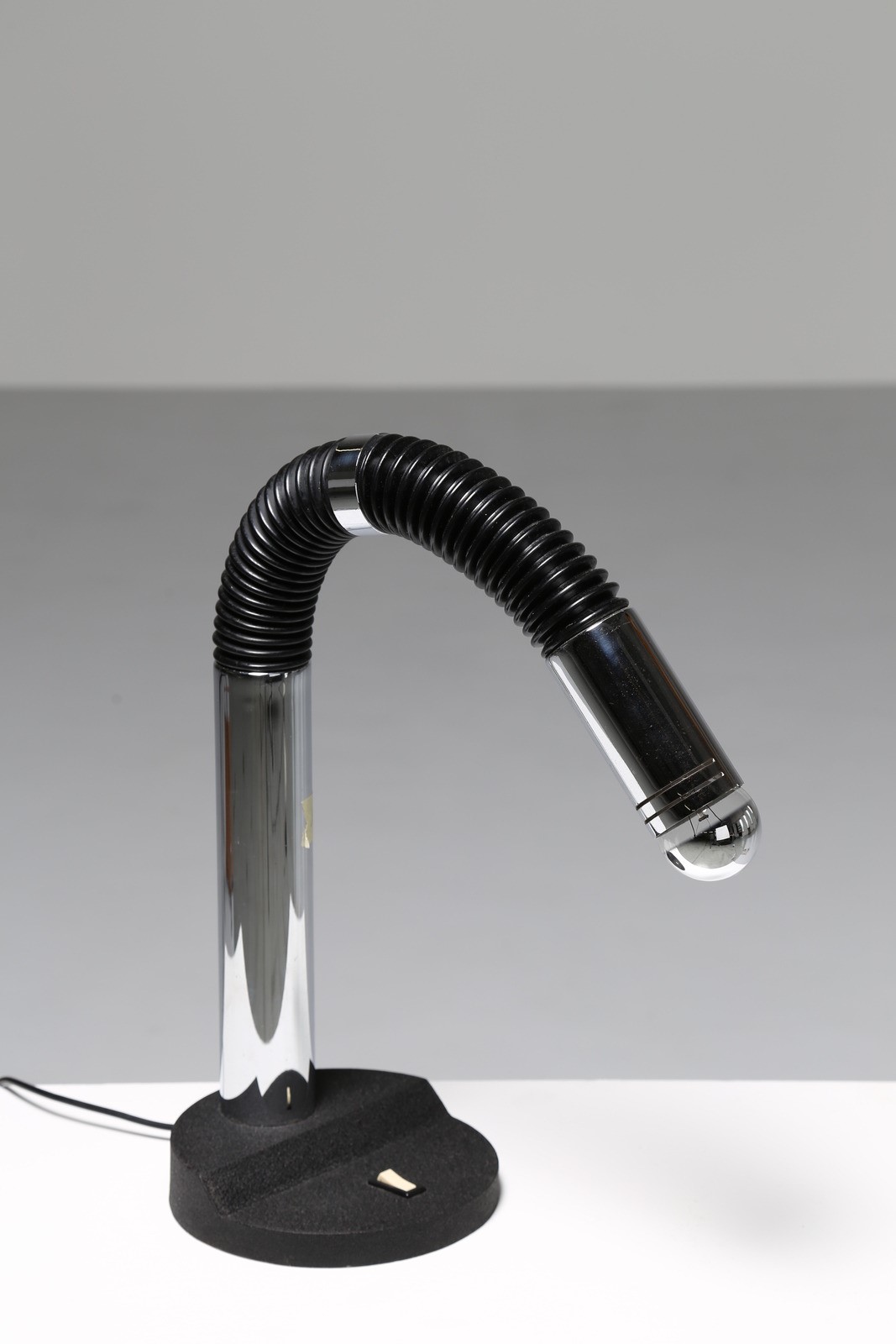 DANILO (1925) & CORRADO (1936) AROLDI Attributed Table lamp mod. Periscopio. Chromed metal, cast iron and plastic. Cm 21,00 x 84,00. Flexible structure, 70s. Working.