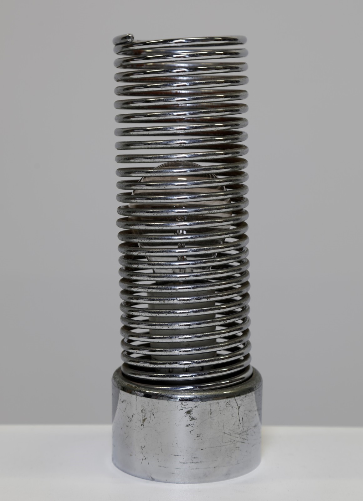 HEINZ BRENKER Lampada da tavolo mod. Jo Jo. Metallo cromato. Cm 8,50 x 24,00 x 8,50. Prodotta da Harvey Guzzini, marchio dell'azienda produttrice sotto la base, Art. 3502, Made in Italy, anni 70. Funzionante.