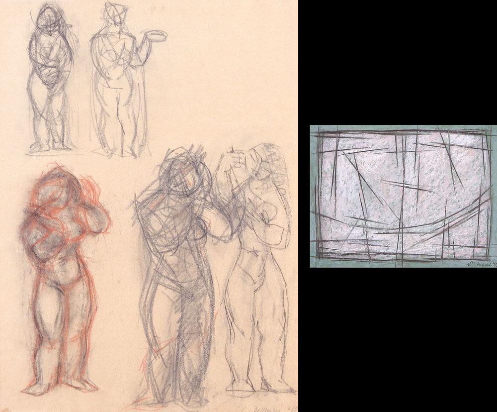 AUTORI VARI CRISTOFORO DE AMICIS Figure, 1969 matita e sanguigna su carta cm....