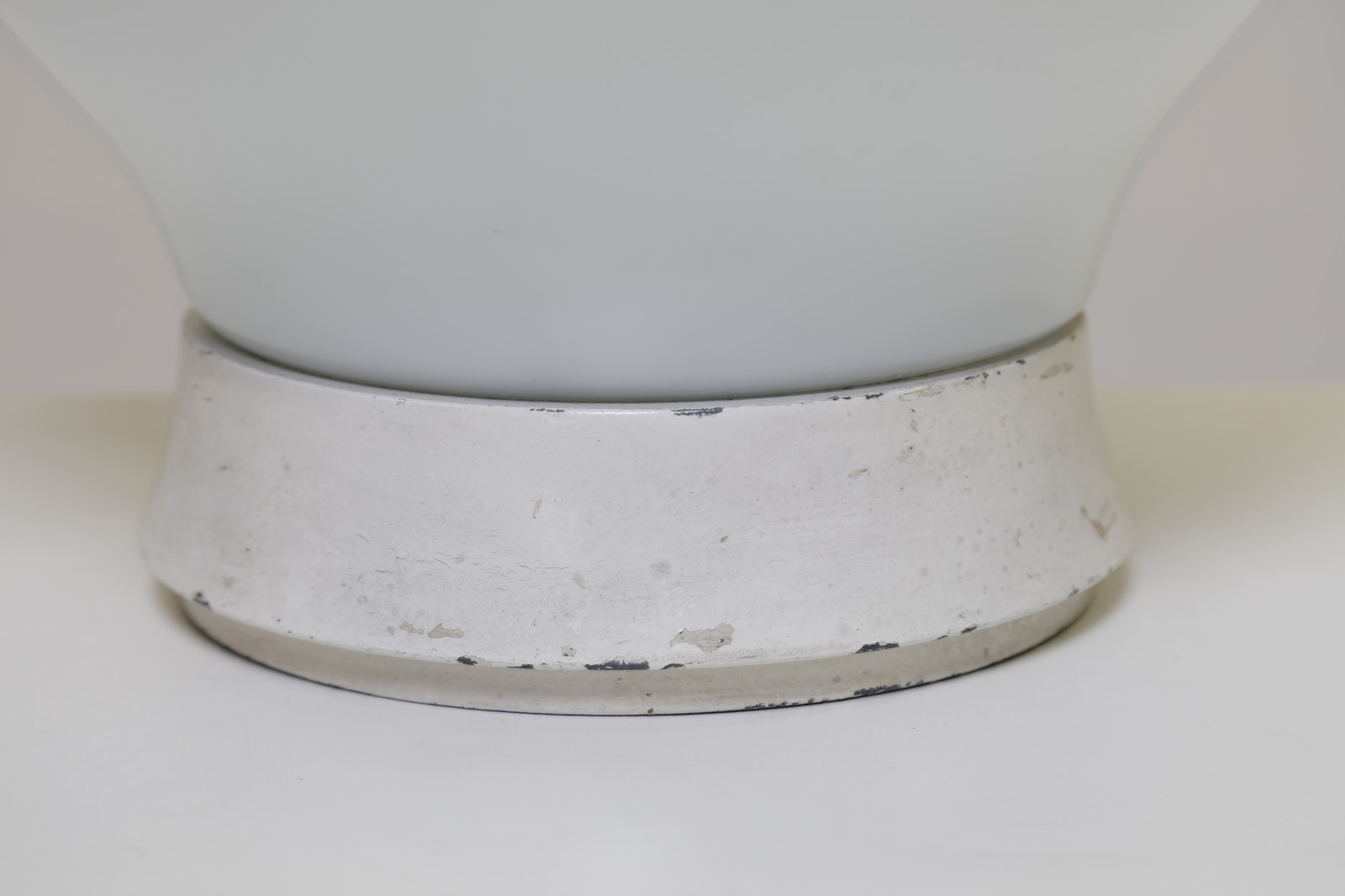 SALOCCHI CLAUDIO (1934 - 2009) Table lamp. . Cm 38,00 x 55,00 x 38,00. Base in white lacquered metal and palino glass shade, for Lumenform, 1968.