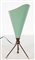 LELII ANGELO (1911 - 1979) Lampada da tavolo mod. Calla. Metallo laccato e ottone. Cm 16,00 x 34,00 x 16,00. Paralume laccato verde, per Arredoluce, anni 50. Funzionante.