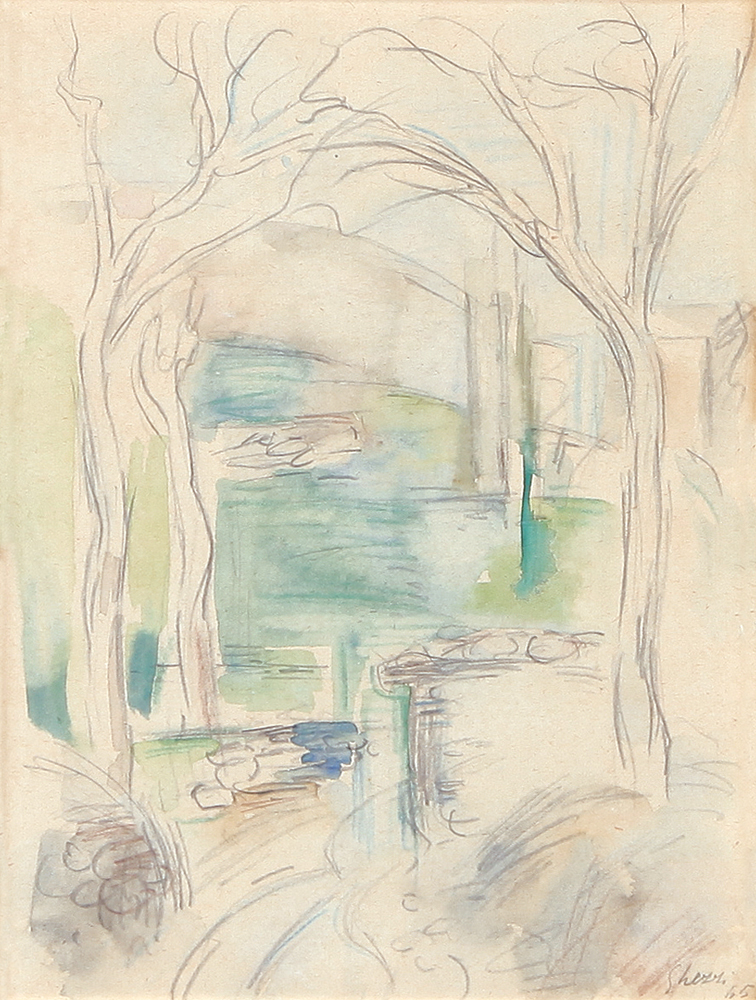 GHEZZI ALBERTO Alberi, 1945 tempera su carta cm. 28x22, firma e anno in basso a destra, etichetta della Galleria Annunciata (MI) al retro.