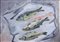 BRUNO CALVANI Mola di Bari 1904 - Milano 1986 Pesci tempera su carta cm. 35x50, sigla dell'artista in basso a destra.