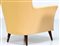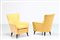 MANIFATTURA ITALIANA Coppia di poltrone. Legno e tessuto. Cm 71,00 x 88,00 x 78,00. Struttura in legno, imbottitura e rivestimento in tessuto, anni 50.