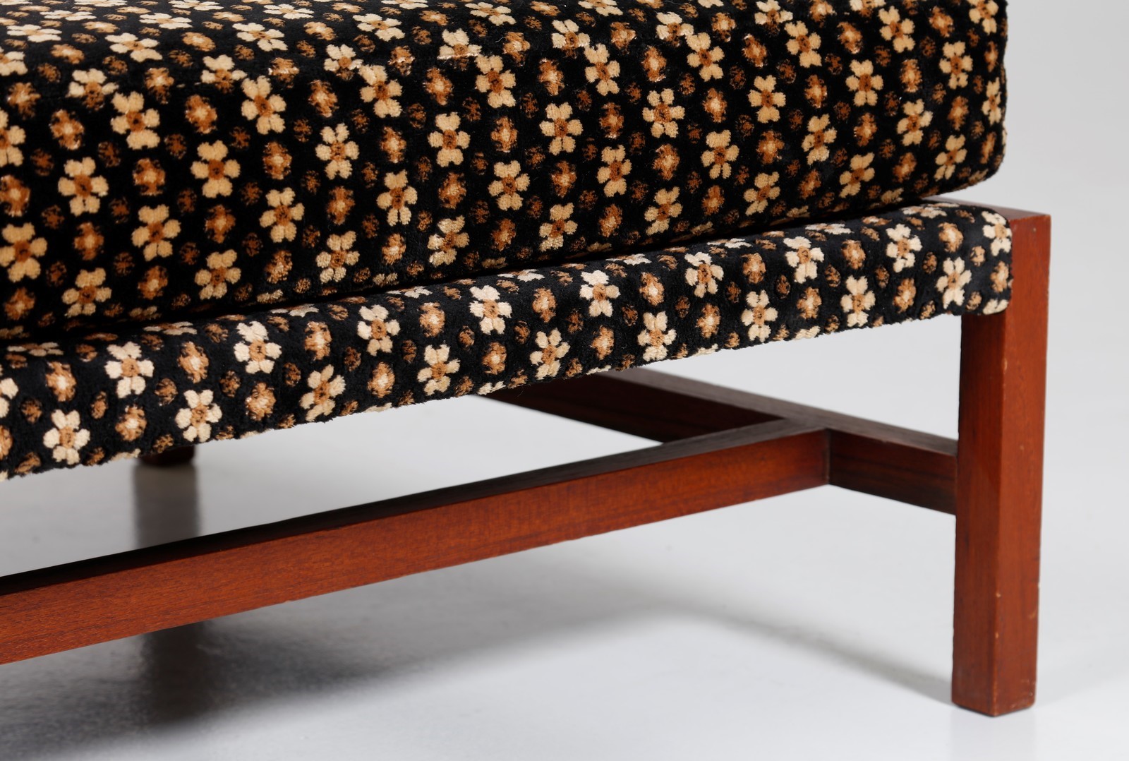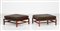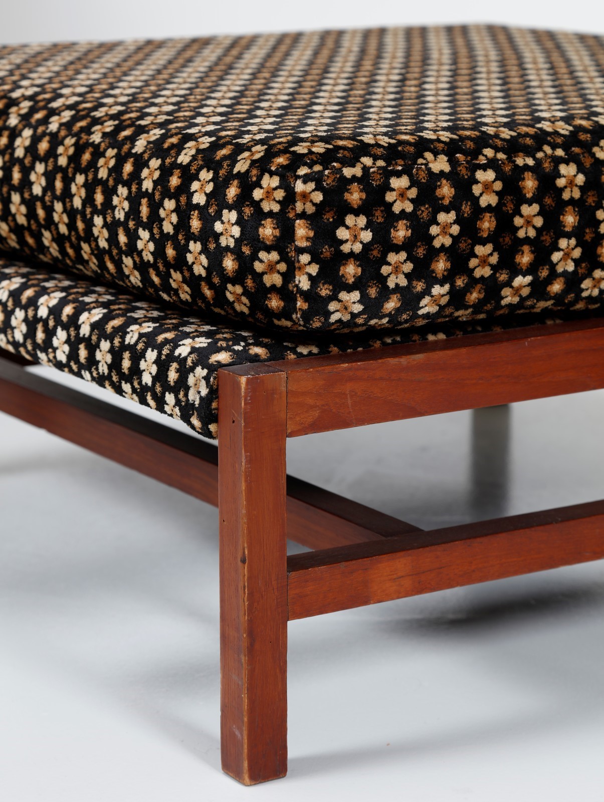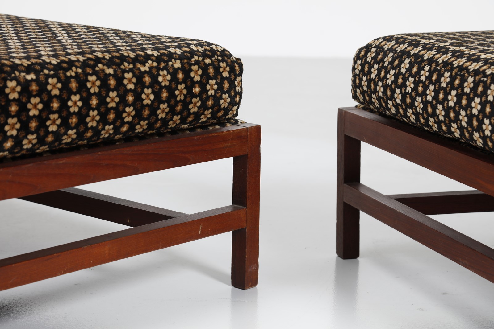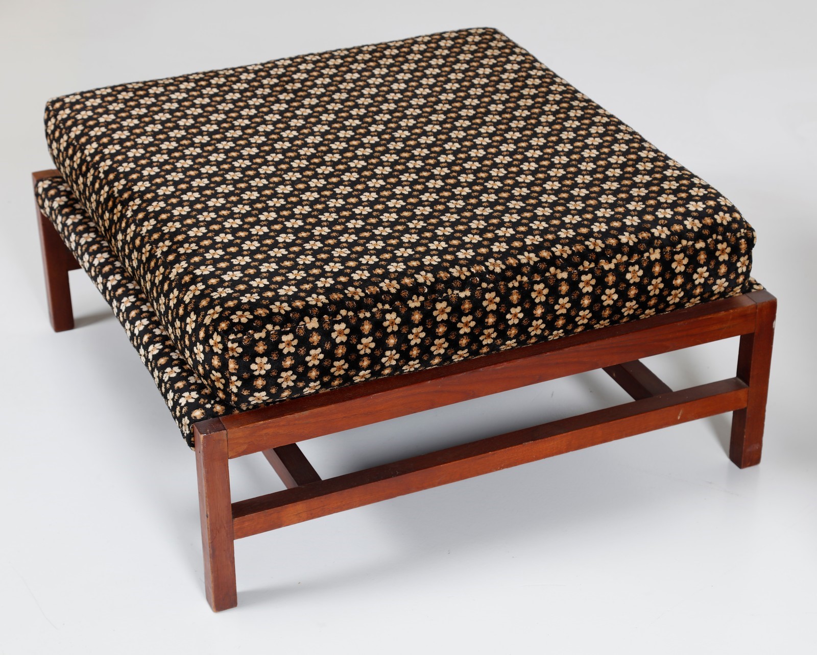 STUDIO CASSINA Coppia di pouf. Legno e tessuto. Cm 76,00 x 35,00 x 76,00. Struttura in legno di teak, imbottitura e rivestimento in tessuto.
