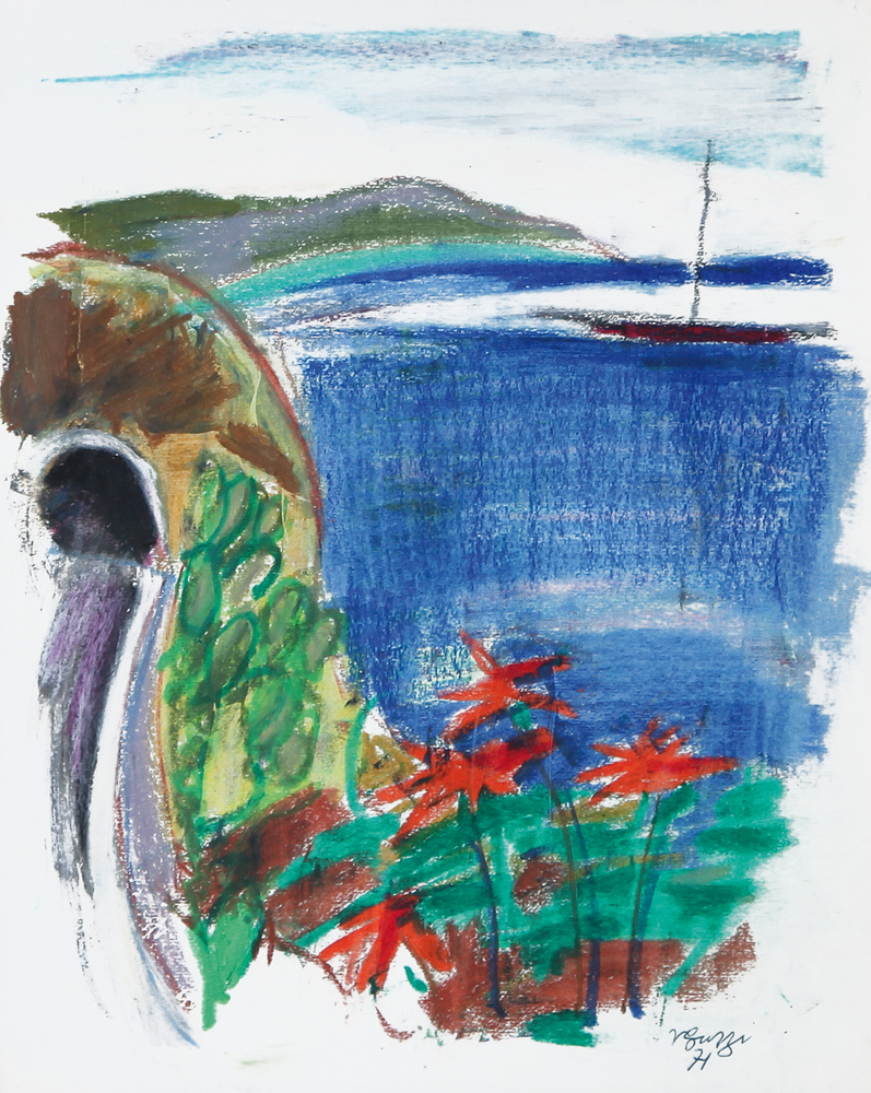 VIRGILIO GUZZI Molfetta (Ba) 23/12/1902 - Roma 09/11/1978  Marina, 1971 tecnica mista su carta cm. 35x28,2; firma e anno in basso a destra, dichiarazione d'autenticità di Giuliana Guzzi su foto.